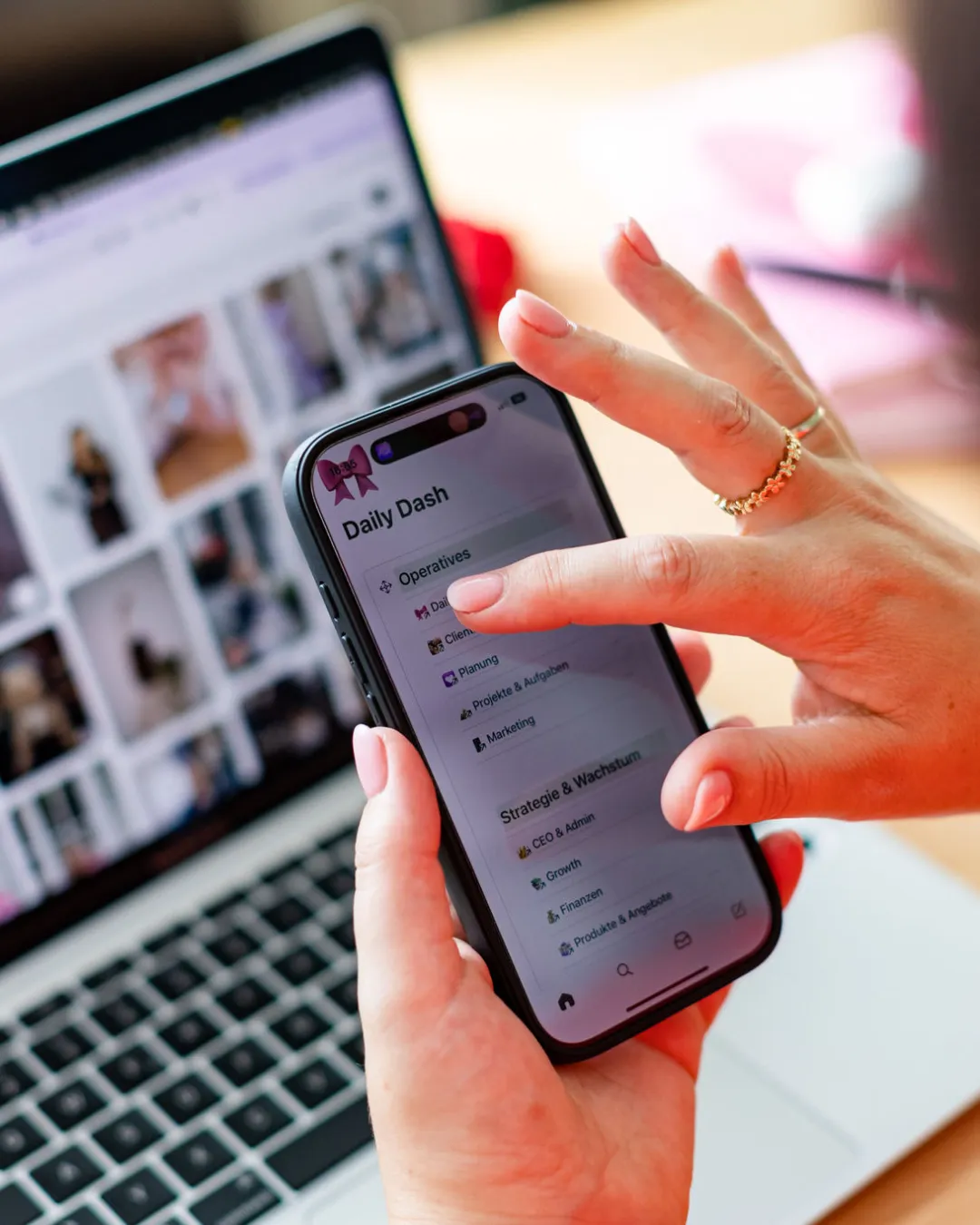 Ich arbeite jetzt viel fokussierter, ohne ständiges Suchen oder Grübeln, was heute ansteht. Ich setz mich hin, öffne Notion und leg los. Alles rund um Businessorganisation, Produkte, Ideen und Fortbildungen ist jetzt an einem Ort. Die Investition hat sich mehr als ausgezahlt: So viel Zeit und Energie gespart – schon nach wenigen Wochen.